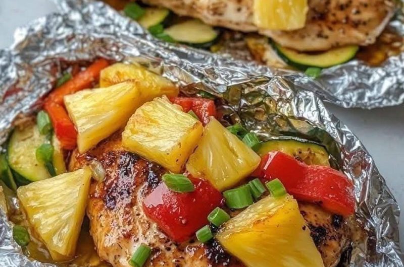 This dish combines juicy chicken, sweet pineapple, and savory teriyaki sauce, all cooked together in sealed foil packets. The method traps steam and flavor, resulting in tender meat and well-infused vegetables.